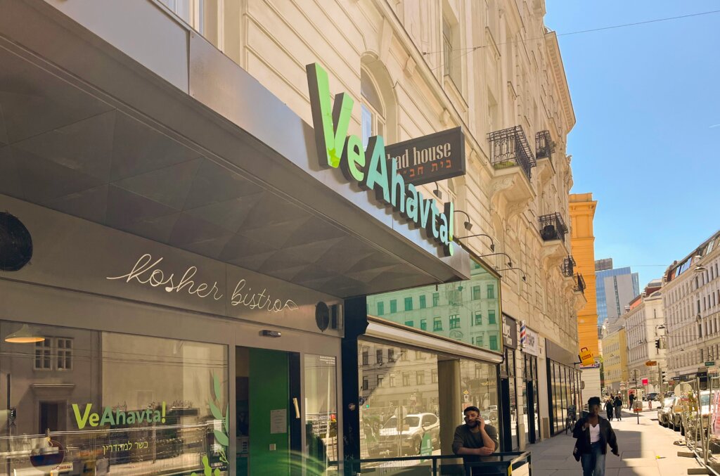 דעם זונטיק, נאָך דער „ייִװי“־אונטערנעמונג, טרעף איך זיך מיט מלובֿיצקי אויף אַ שפּאַציר אַרום לעאָפּאָלדשטאַט. מיר גײען אַרײַן אין אַ רעסטאָראַנדל וואָס הייסט „וְאָהַבְתָּ!“ — אַ שיינער נאָמען װאָס שפּיגלט אָפּ דעם װינער שלום־בית.