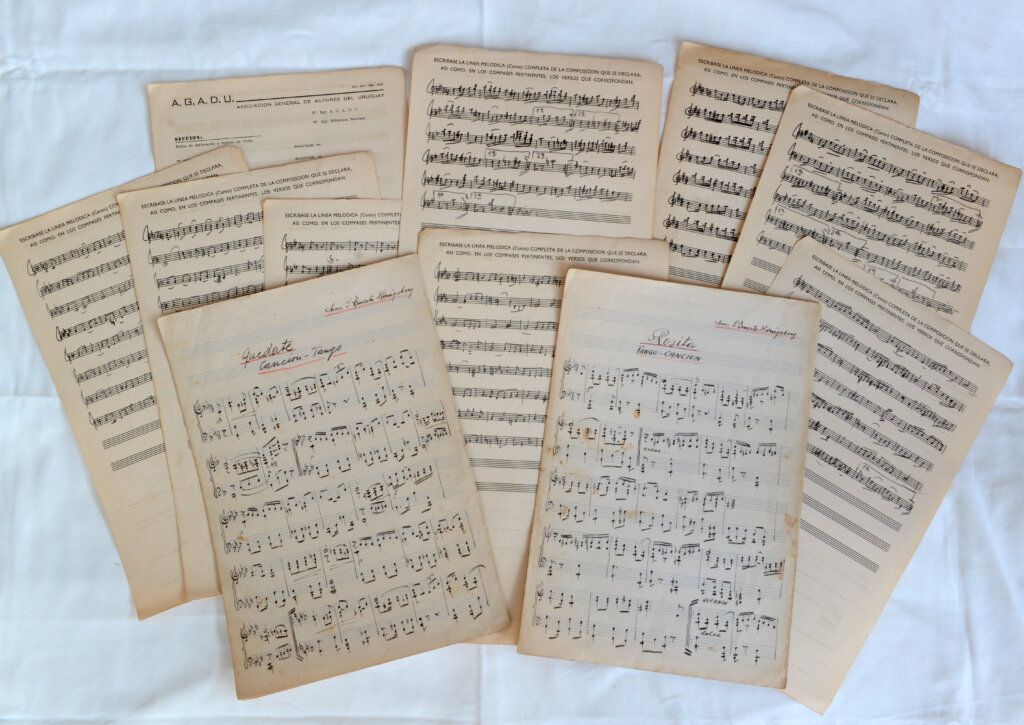 די נאָטן פֿון קאָמפּאָזיציעס פֿונעם אַלבום „פּרימאַװעראַ“ (פֿרילינג), רעגיסטרירט אין אורוגװײַ, 1950 (מקור׃ דער העניגסבערג־אַרכיװ) Photo by the Henigsberg Archive